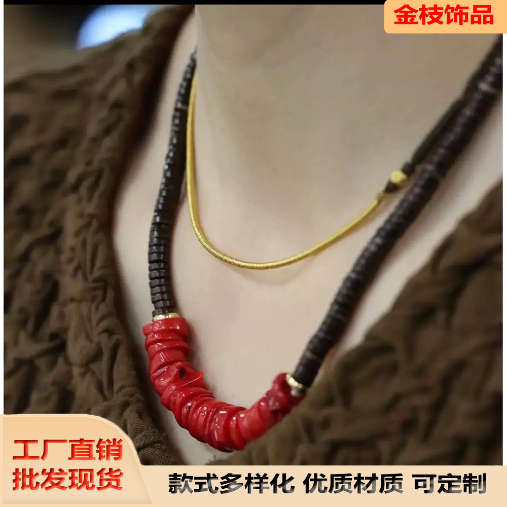 Natural coconut shell new vintage Joker national wind natural coral red agate fashion high-end necklace wholesale