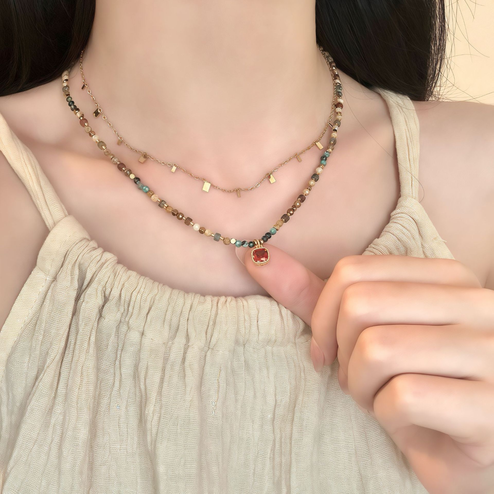 Colorful Natural Stone Beaded Wearing Necklace Accessories Women's Maillard Vintage Pendant Necklace Chain Design Clavicle Chain