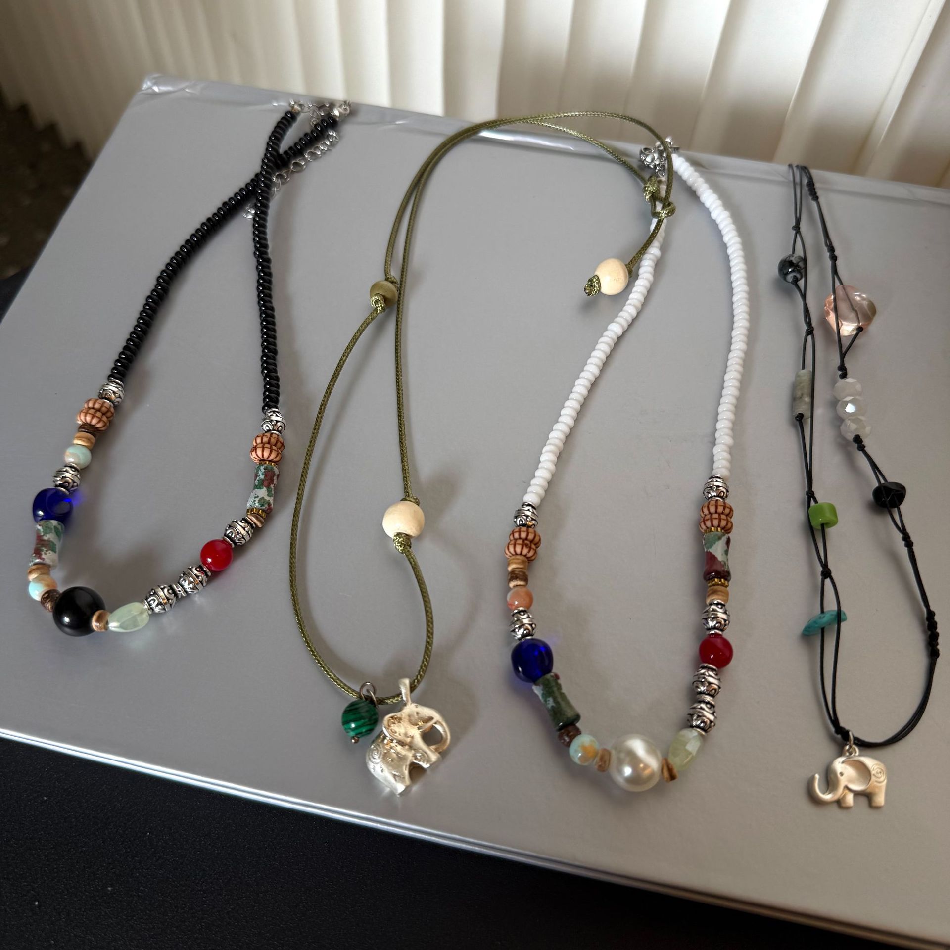 Elephant Pendant Necklace Women's Handmade Woven Colorful Natural Stone Necklace Entry Luxury Small New Chinese Style Beaded Woolen Chain