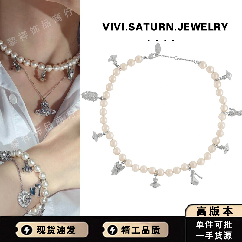 High Version 24 New Western Queen Mother Anglo Sati Baby Corset Saturn Pearl Multi Pendant Necklace Bracelet