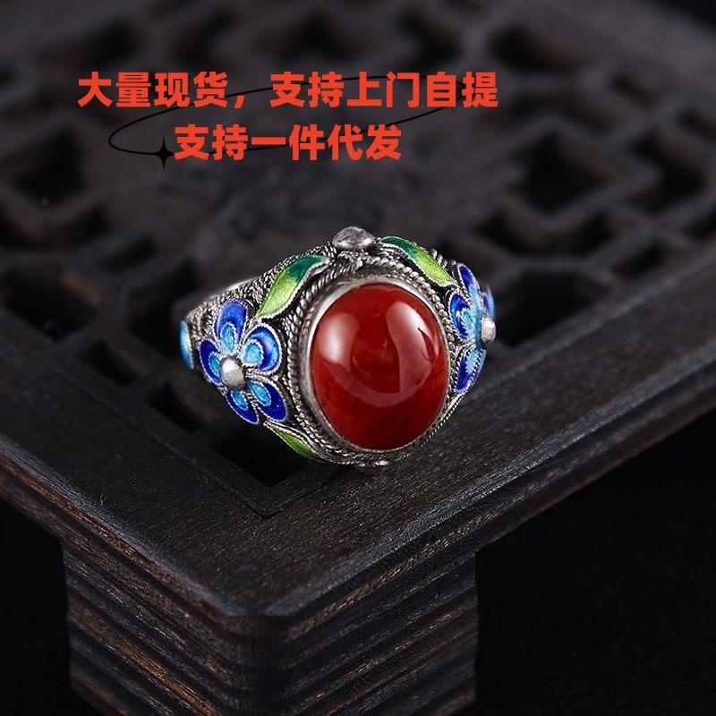 Filigree Inlaid Ring, Old Burnt Blue Retro Palace Ring, Silver-Plated Handmade Filigree Ring, Gift for Mom