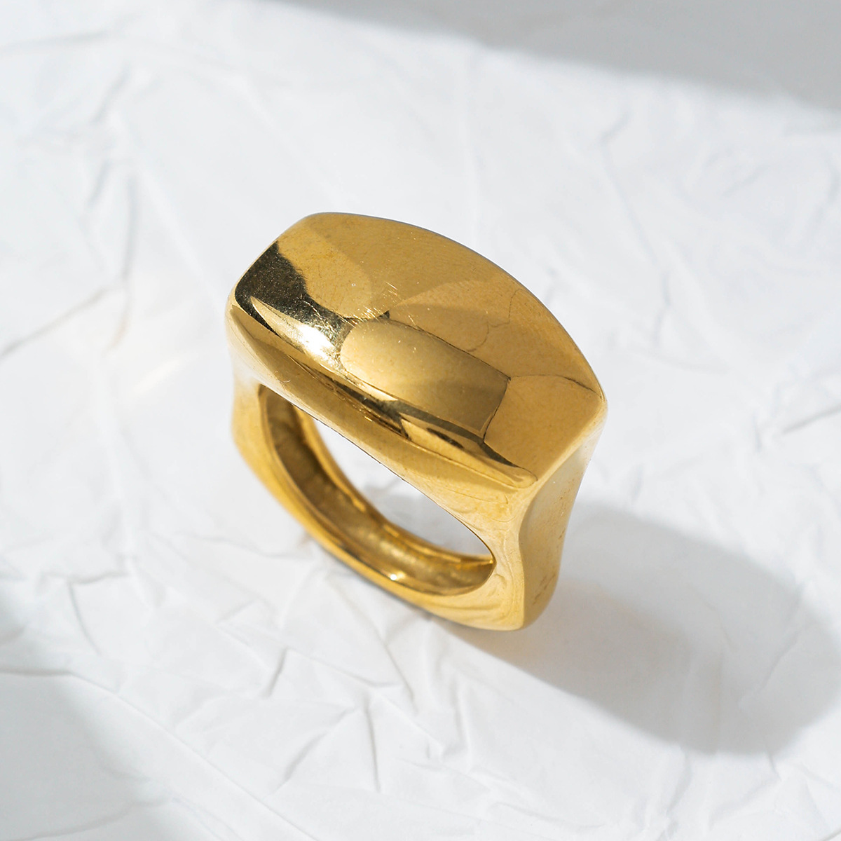Fashionable Casual Stainless Steel Square Dome Thick Cast Ring Plated with 18K Gold Anti-Fading Export Jewelry Wholesale