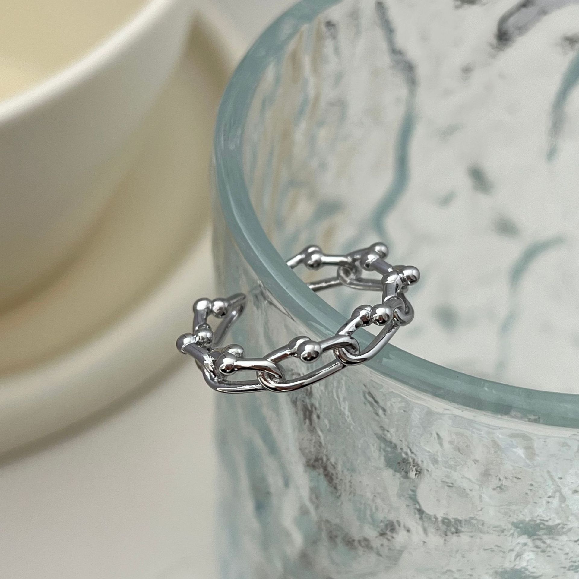 Geometric Korean-Style Chain Lock Ring, Thick and Heavy Texture, Korean Dongdaemun Open Simple High-End Ring