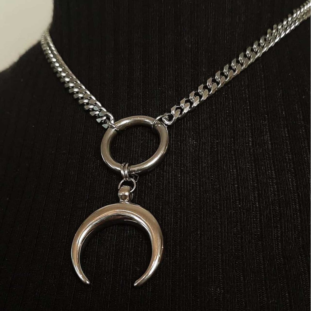 Junyan Cross-Border Crescent Moon O-Shaped Ring Chain Necklace Alternative Gothic Heavy Necklace Celestial Jewelry