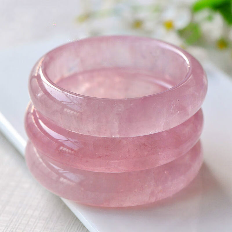 Natural pink crystal bracelet Mozambique pink crystal female bracelet thickened narrow wide cute peach blossom ice transparent light pink