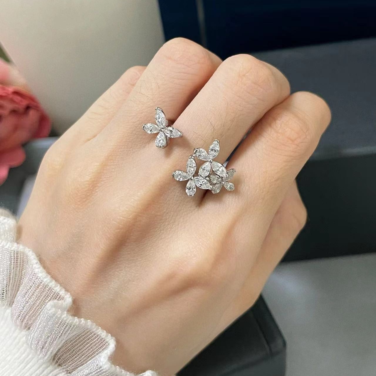 V gold high fixed horse eye butterfly opening ring plated 18k hand inlaid with high carbon drill four smart bows thick