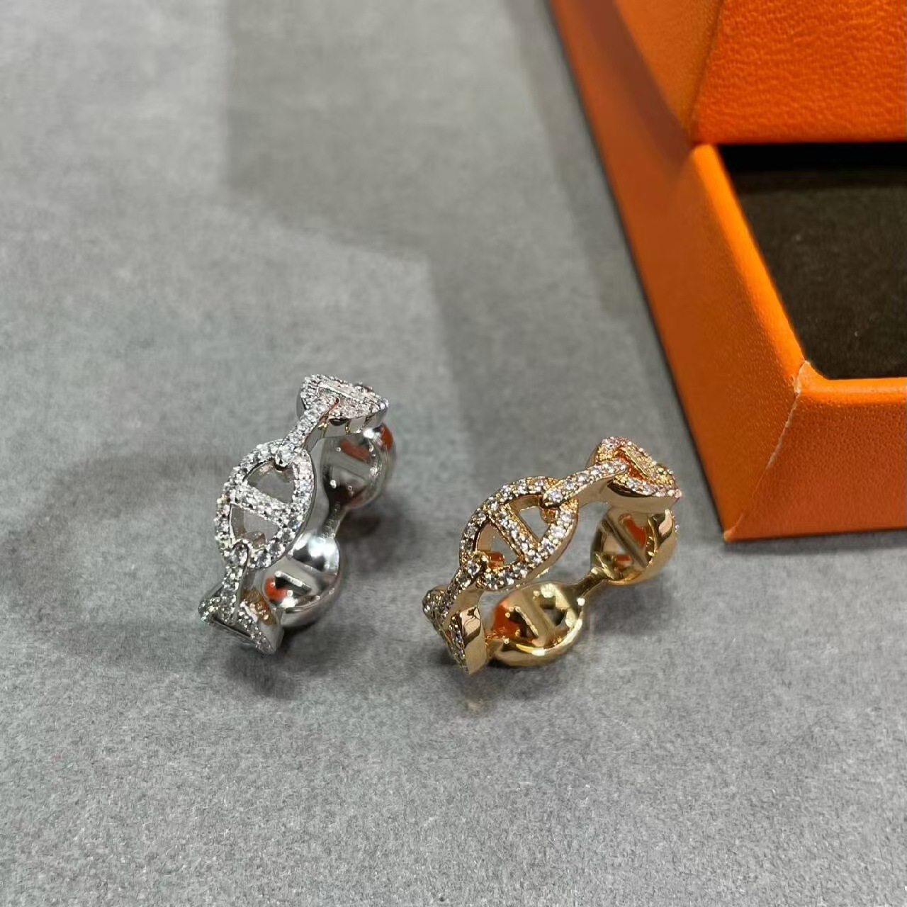 Cross-Border Hot-Selling New Product Stacked Cubic Zirconia Ring 18K Gold Copper Thick High-Gloss Gold and Silver Double Ring