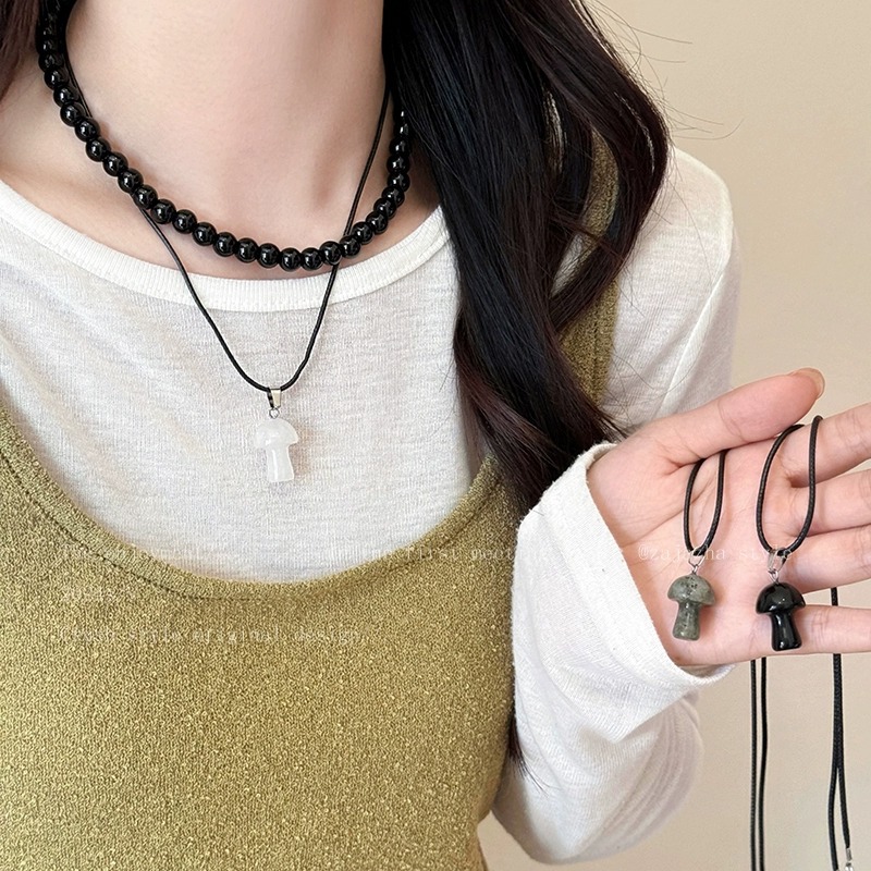Cute Mushroom Pendant Pearl Necklace Girls South Korea Niche Ins Style Sweater Chain Simple Design Sense Sweater Chain