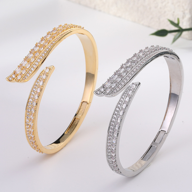 European and American Heavy-Duty Full Diamond Zircon Open Bracelet Trendy Fashion Personality Creative Hand Jewelry Cross-Border Popular Wing Bracelet