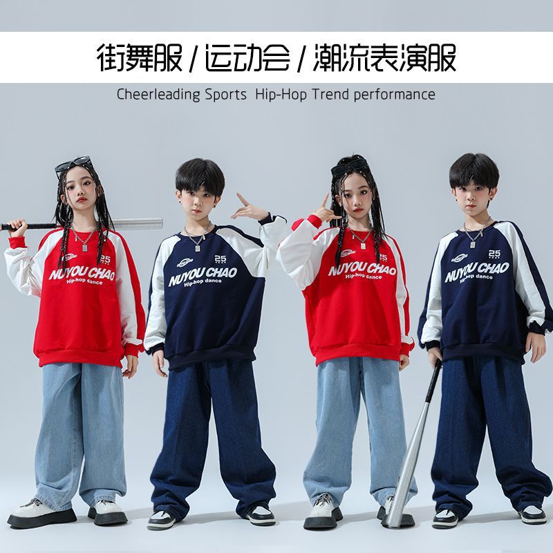 Hip-Hop Children's Fashion Clothes Hip-Hop suit Boys and Girls Cool American Motorcycle Sweat Hiphop Drum Performance Clothes