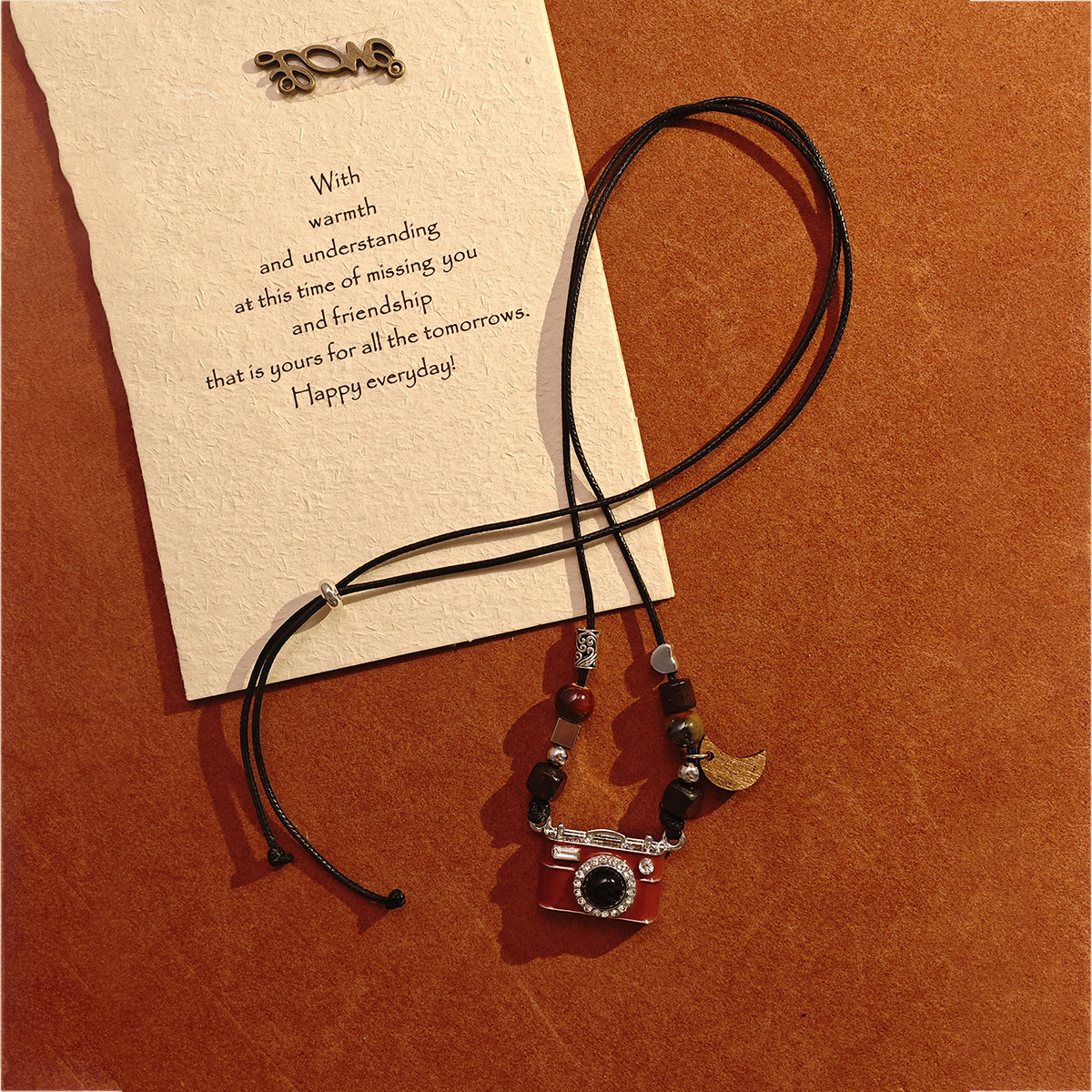 British Retro Moon Camera Pendant Necklace Women's Light Luxury Trendy Design Fashion Sweater Sweater Necklace