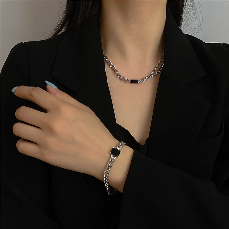 Vintage Black Square Gemstone Titanium Steel Fadeless Clavicle Chain Sweatshirt Accessories Cold Style All-match Necklace Women's Fashion