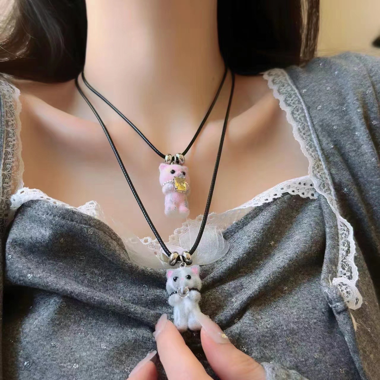 Cute Flocking Bear Sweater Chain Necklace Female Niche Design Autumn and Winter Long Fun Cartoon Soft Cute Sweater Chain