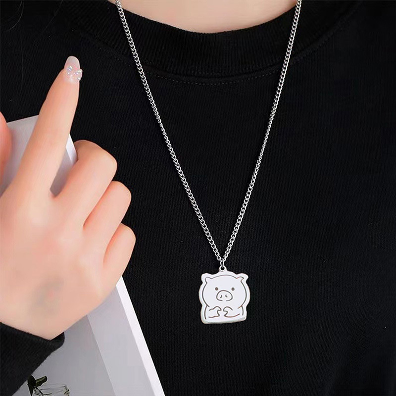 Cute Bixin pig pendant personality titanium steel necklace men's and women's sweater accessories long hip hop sweet personality student