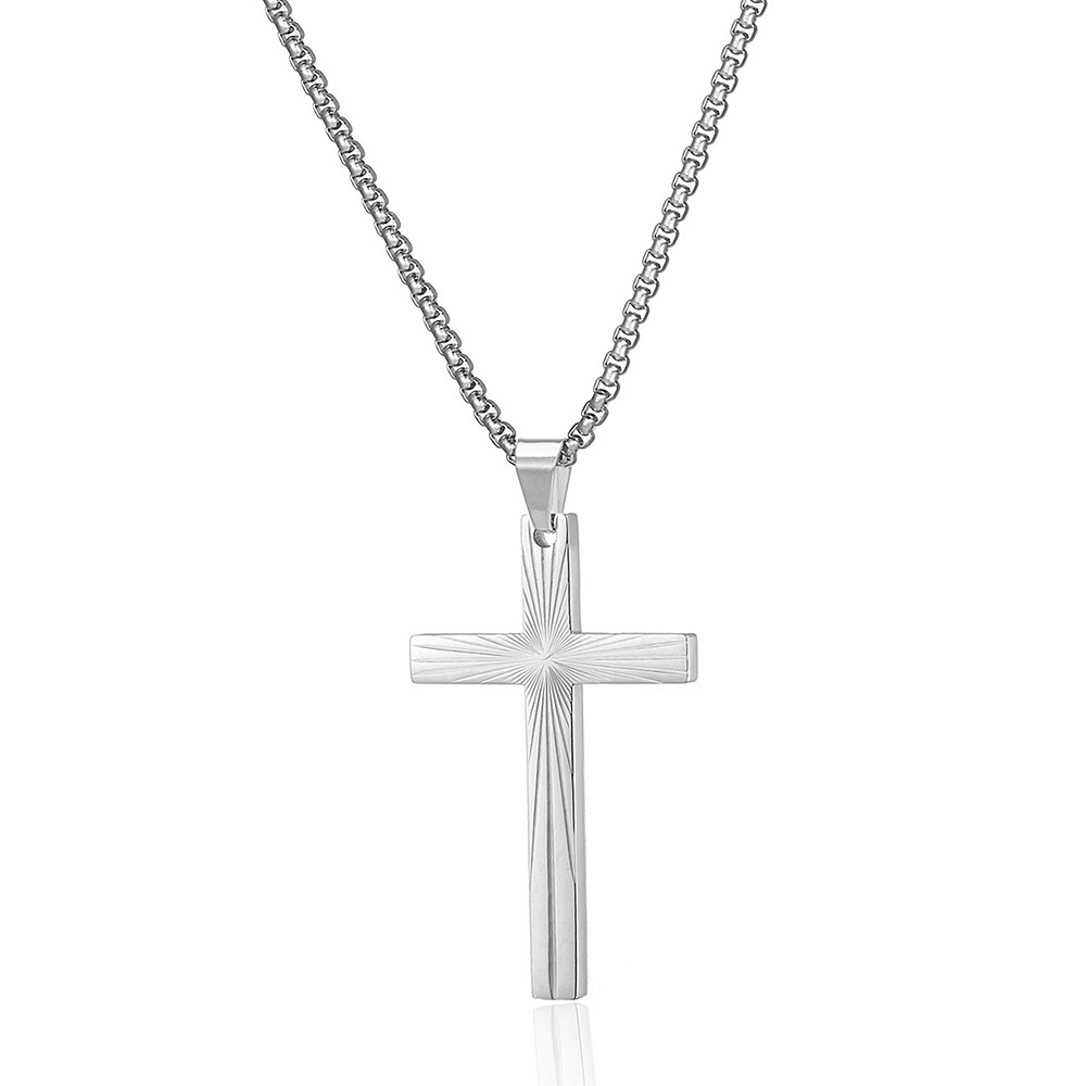 Trendy Simple Light Refraction Cross Necklace Men and Women Street All-match Personalized Titanium Steel Sweat Chain Hip-hop Jewelry