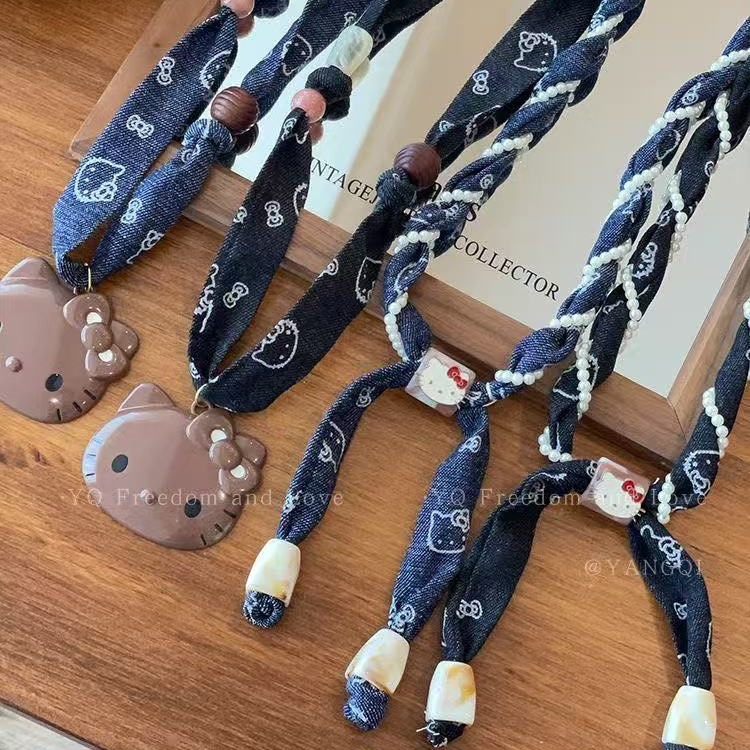Cute Fabric Kt Cat Sweater Chain Necklace Scarf Collarbone Blue Versatile Accessory Sweatshirt Chain Fashion Accessory