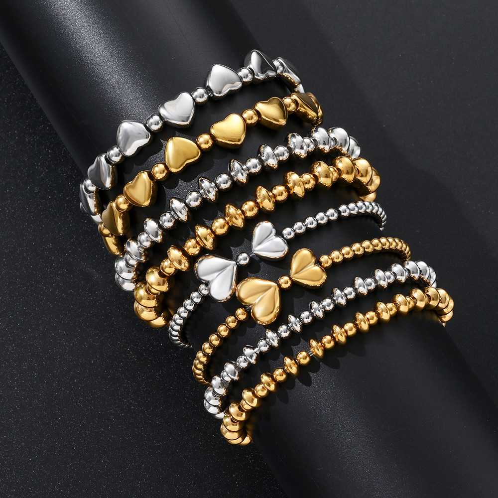 Supply Cross-Border Heavy Style Metal Stainless Steel Heart Abacus Bead Jewelry 18K Gold Non-Fading Elastic Bracelet