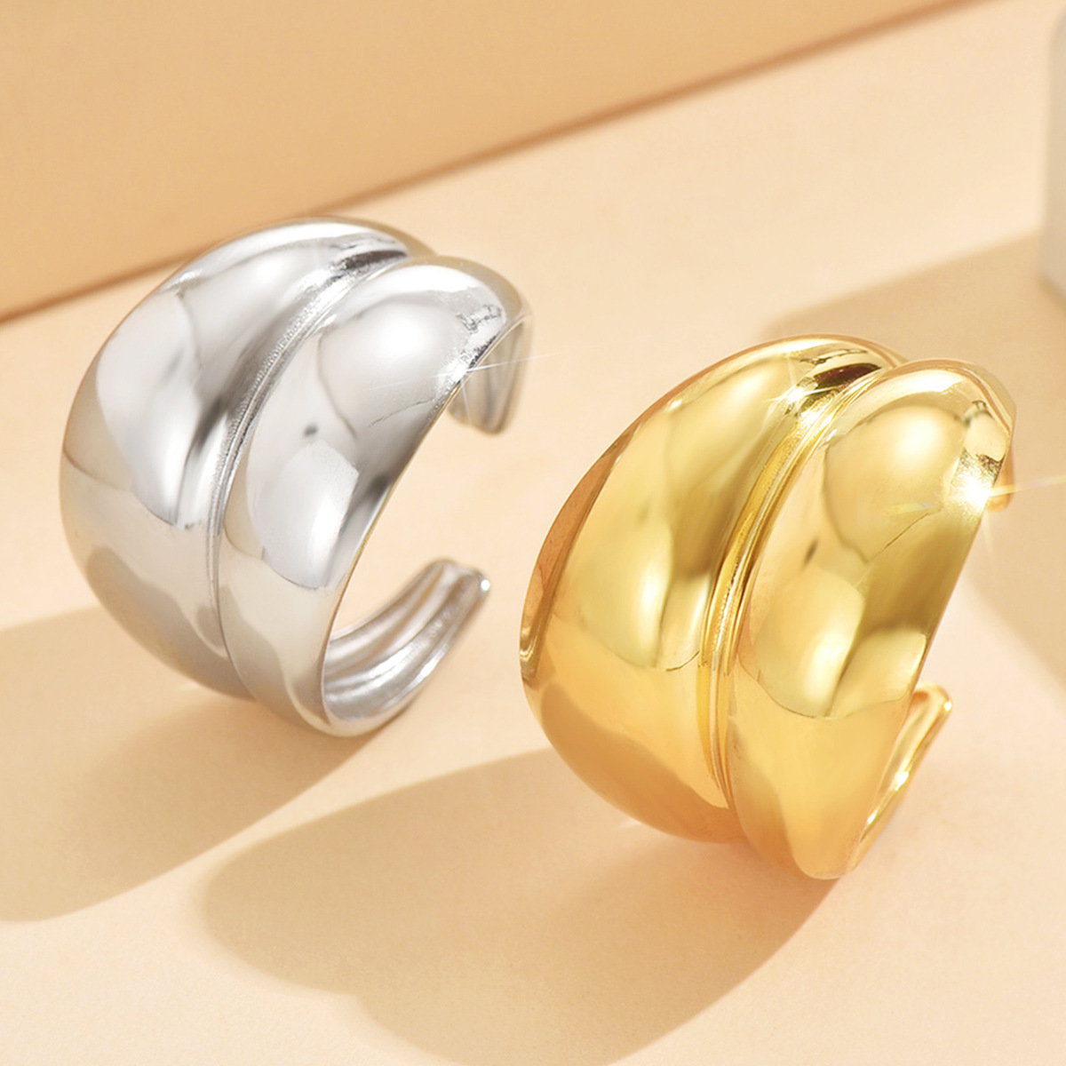 Retro Old Money Style Geometric Round Drum-Shaped Stainless Steel Ring Heavy Metal Open Ring Vacuum Gold-Plated Jewelry