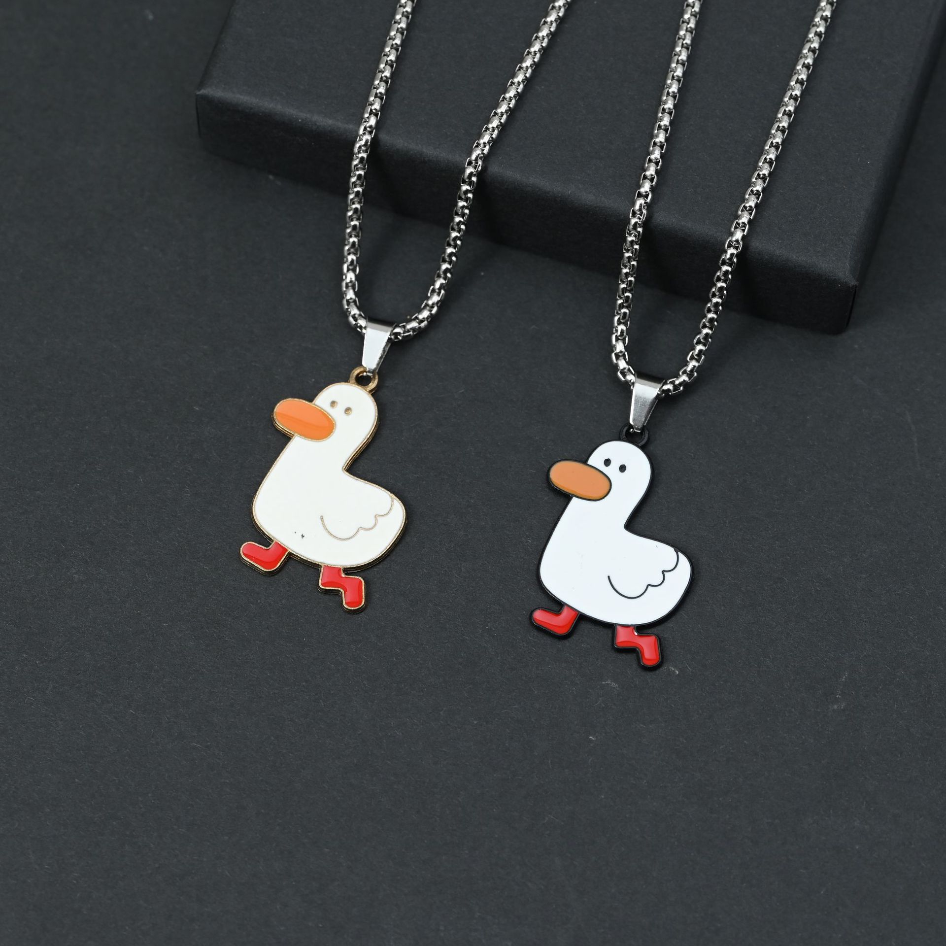 Refueling Duck Cute Cartoon Necklace Couple Simple All-match Sweater Chain Ins Trendy Personalized Pendant for Boys and Girls