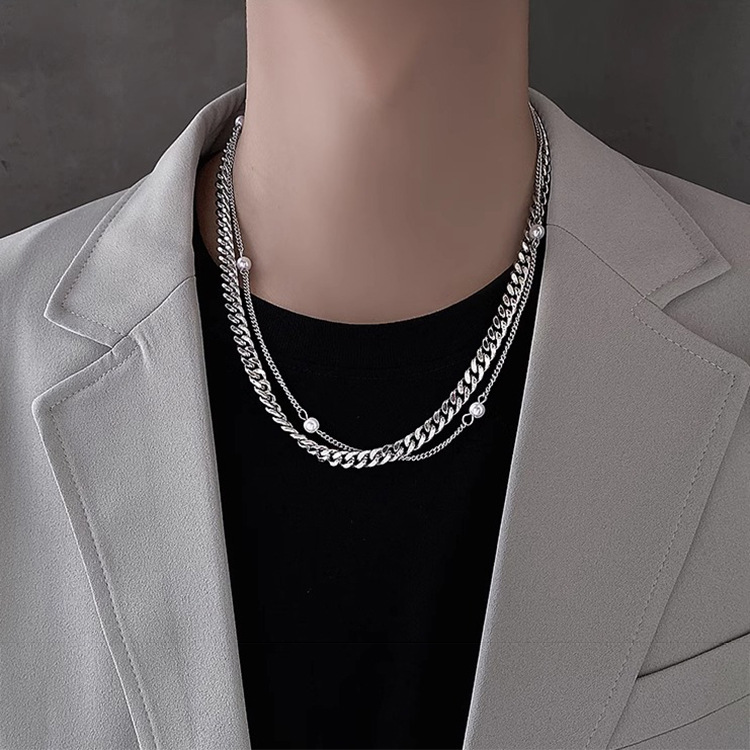 Men's necklace men's fashion high-grade sense Ruan handsome design sense Pearl sweater chain fashion brand all-match boys accessories fashion