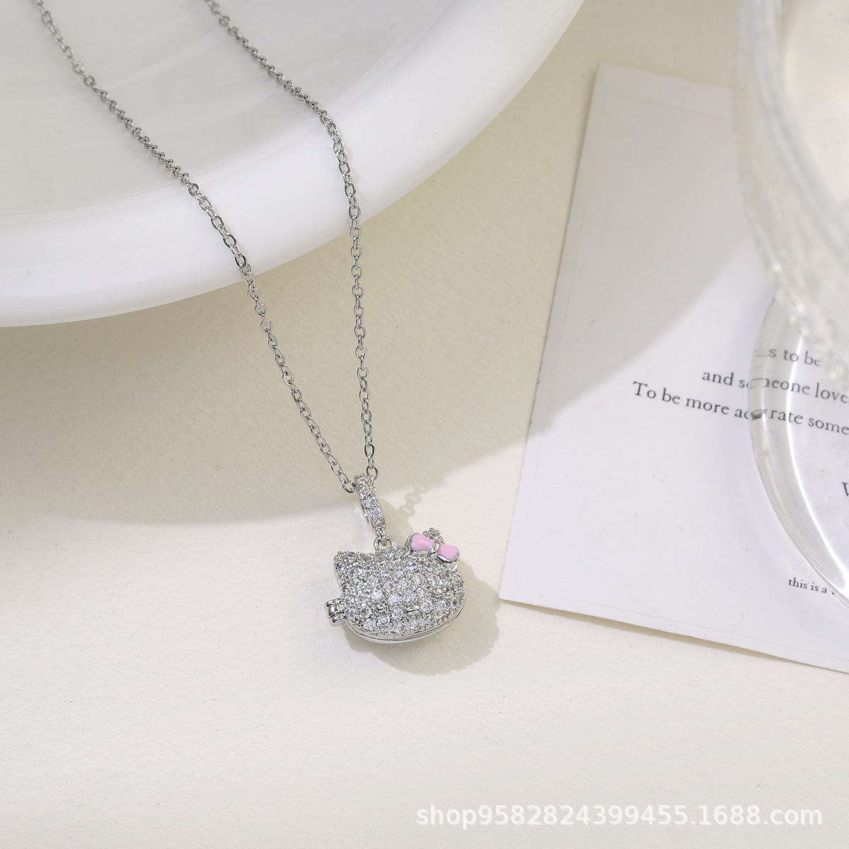 New Style Cat Necklace with Diamonds, Fashionable, Cute and Sweet Style Long Necklace, Autumn and Winter Clavicle Chain Pendant That Can Be Opened