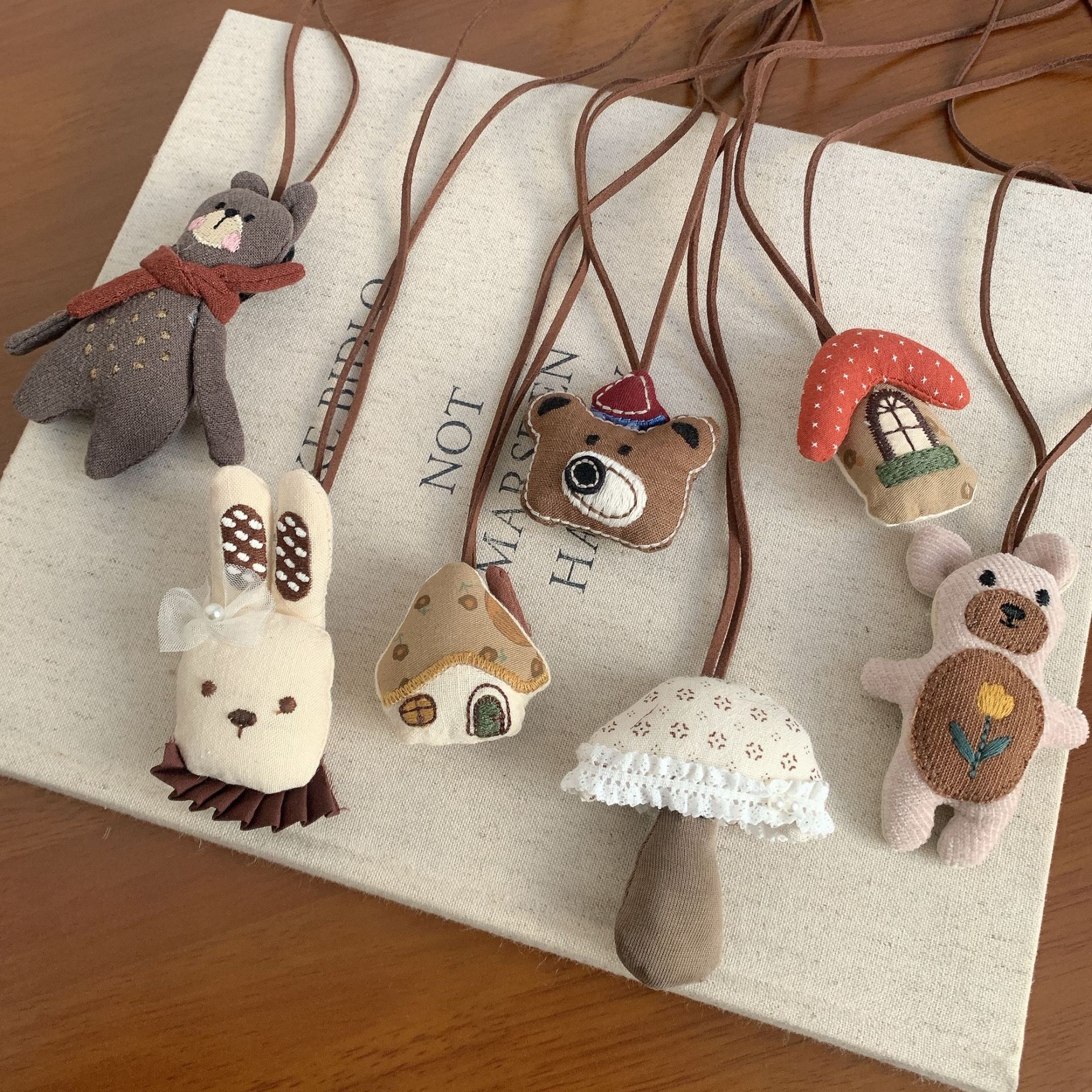 Sweet Cute Plush Small Animal brown Necklace Women's Autumn and Winter High Sense Sweater Chain Accessories Distinctive Sweater Chain