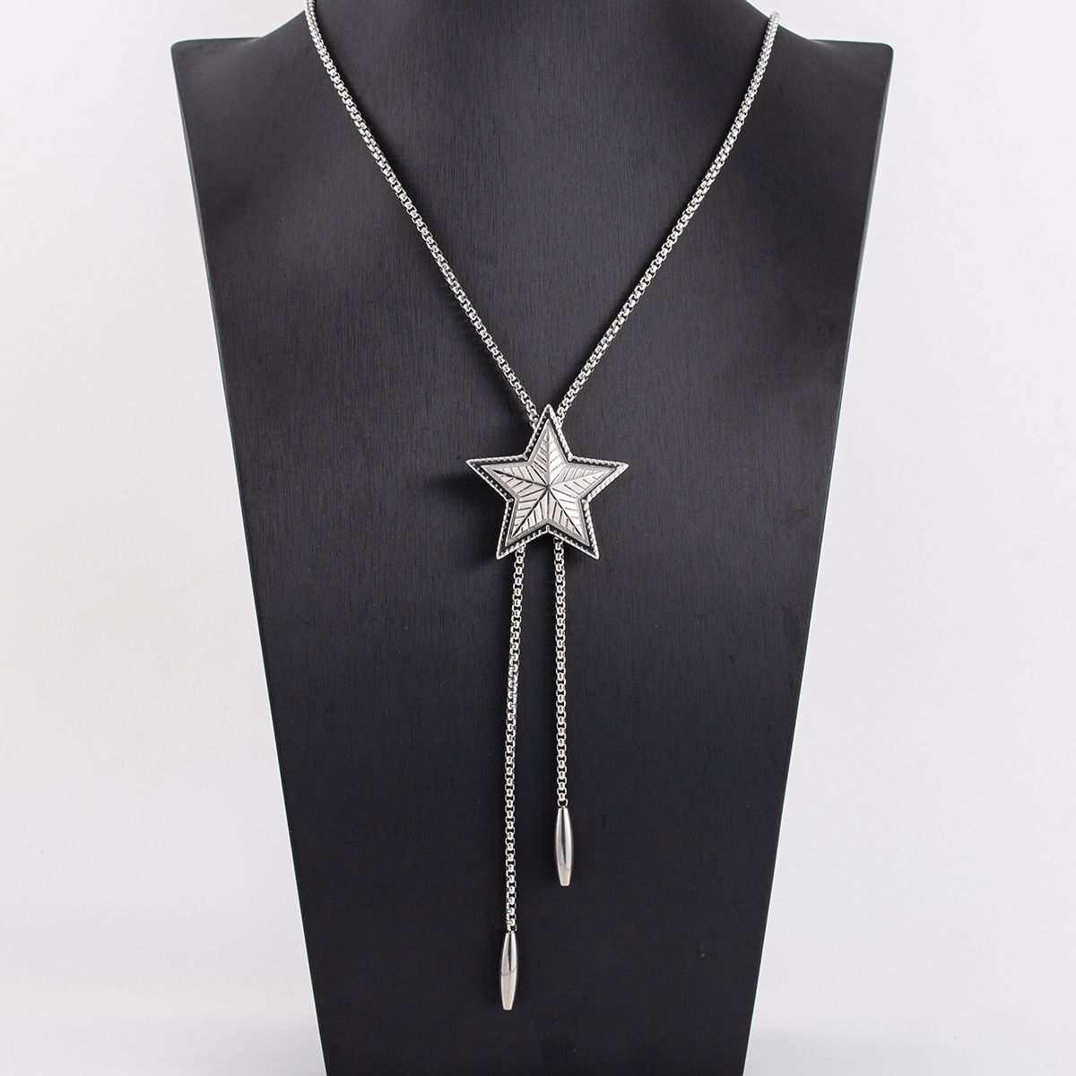 European and American fashion titanium steel long three-dimensional five-pointed star Y necklace winter trend men's and women's sweater chain new