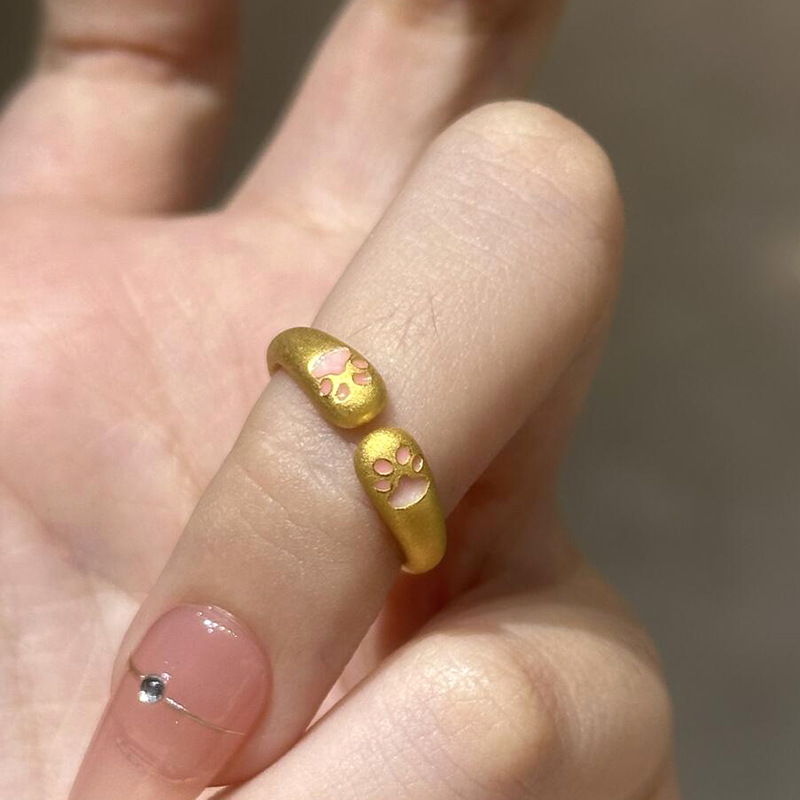 Xiaohongshu's New Winter Gold Cute Cat Paw Enamel Ring, Niche High-End Light Luxury Jewelry for Women