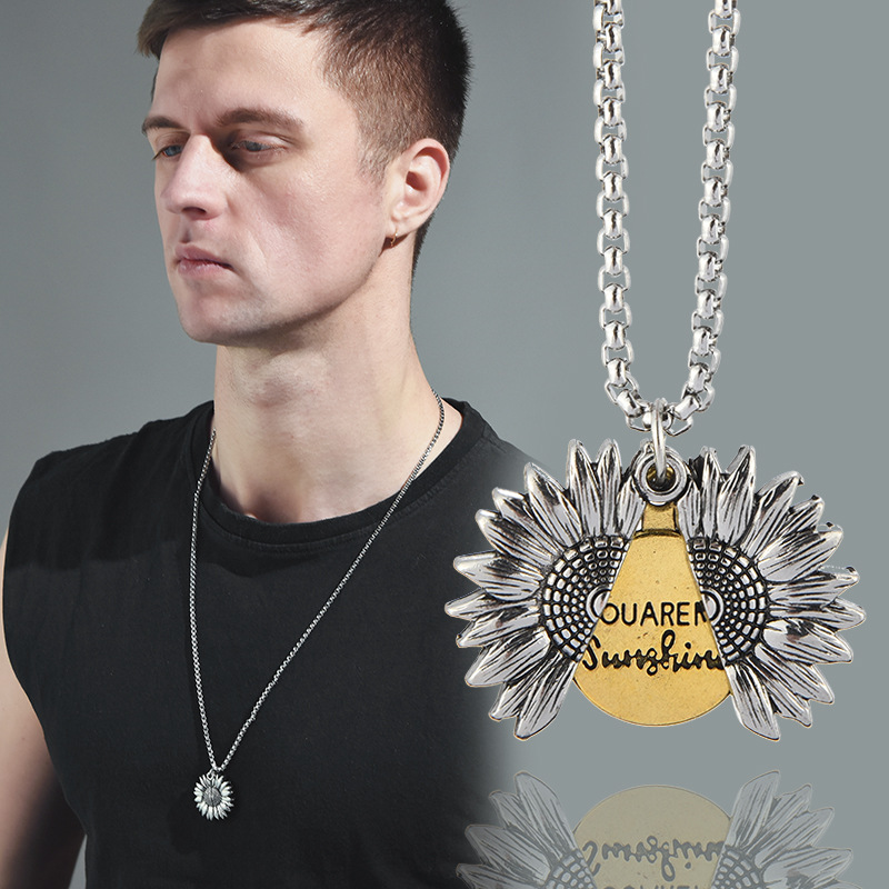 Hip-Hop Unisex Sunflower Necklace Sweatshirt Accessory Sunflower Pendant Titanium Steel Wholesale Trendy