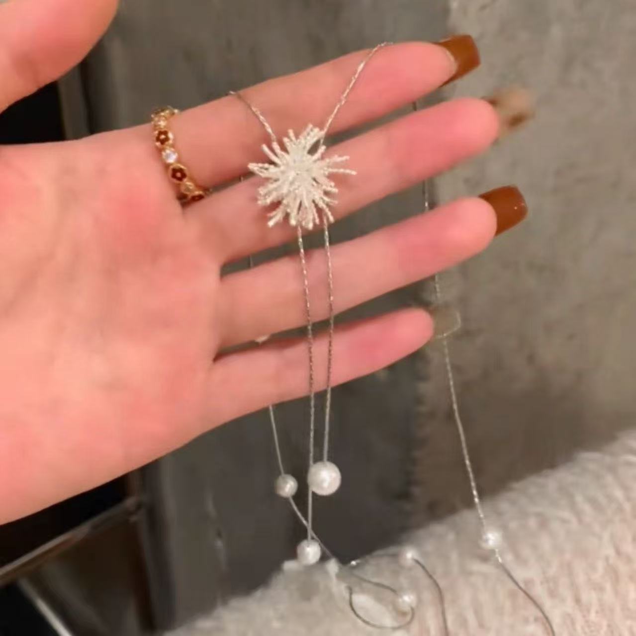 White Fireworks Necklace Sweet High-End Women's Niche Design Light Luxury Trendy Sweater Chain Winter Limited Edition Necklace Aesthetic