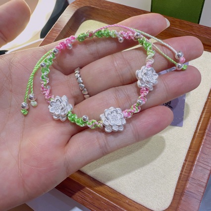 New Chinese-style 999 Silver Lotus Good Luck Triffin Woven Bracelet Cute Girly Sense Delicate Light Luxury Jewelry