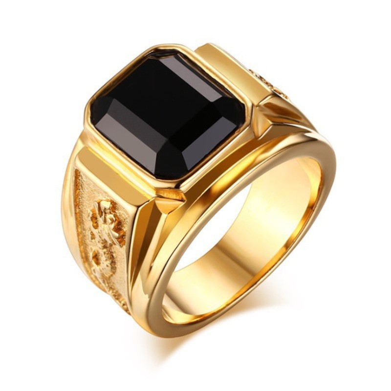 European and American hot fashion square black gemstone ring thick wide face bracelet men's gold diamond ring