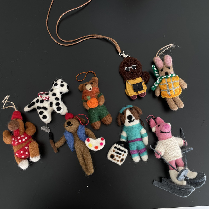 Nepalese Handmade Wool Felt Necklace Niche Fashionable Cute Bear Piggy Pendant Long Sweater Chain