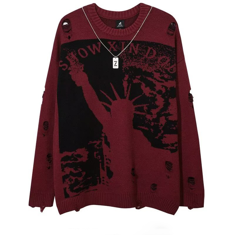 Winter Diablo Style European and American Trend Statue of Liberty Hole for Men and Women Lazy Style American Casual Sweater Sweater Trendy
