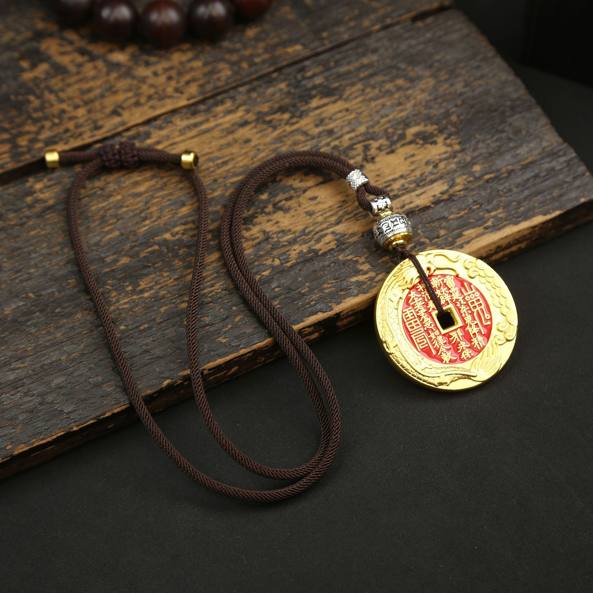 Year of the Dragon Keychain Small Pendant Five Emperors Coin National Trend Pendant to Attract Wealth and Treasure to Door Thickeneded Car Key Ten Emperors Copper Coins