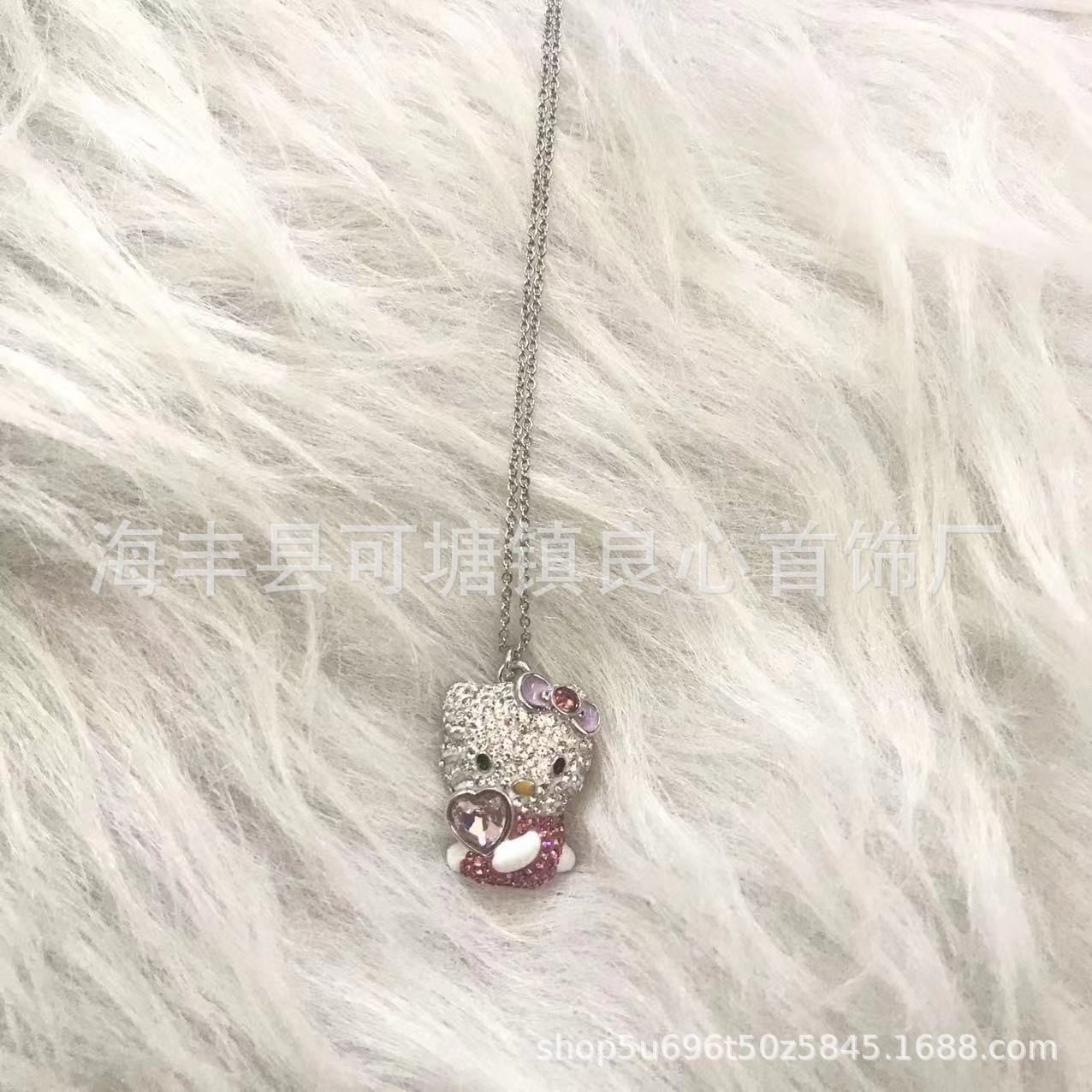 Shi Jia Seiko Holle Pink Cute Cartoon Kt Cat Necklace Cat Heart Necklace Thickened Large Size Pair Edition