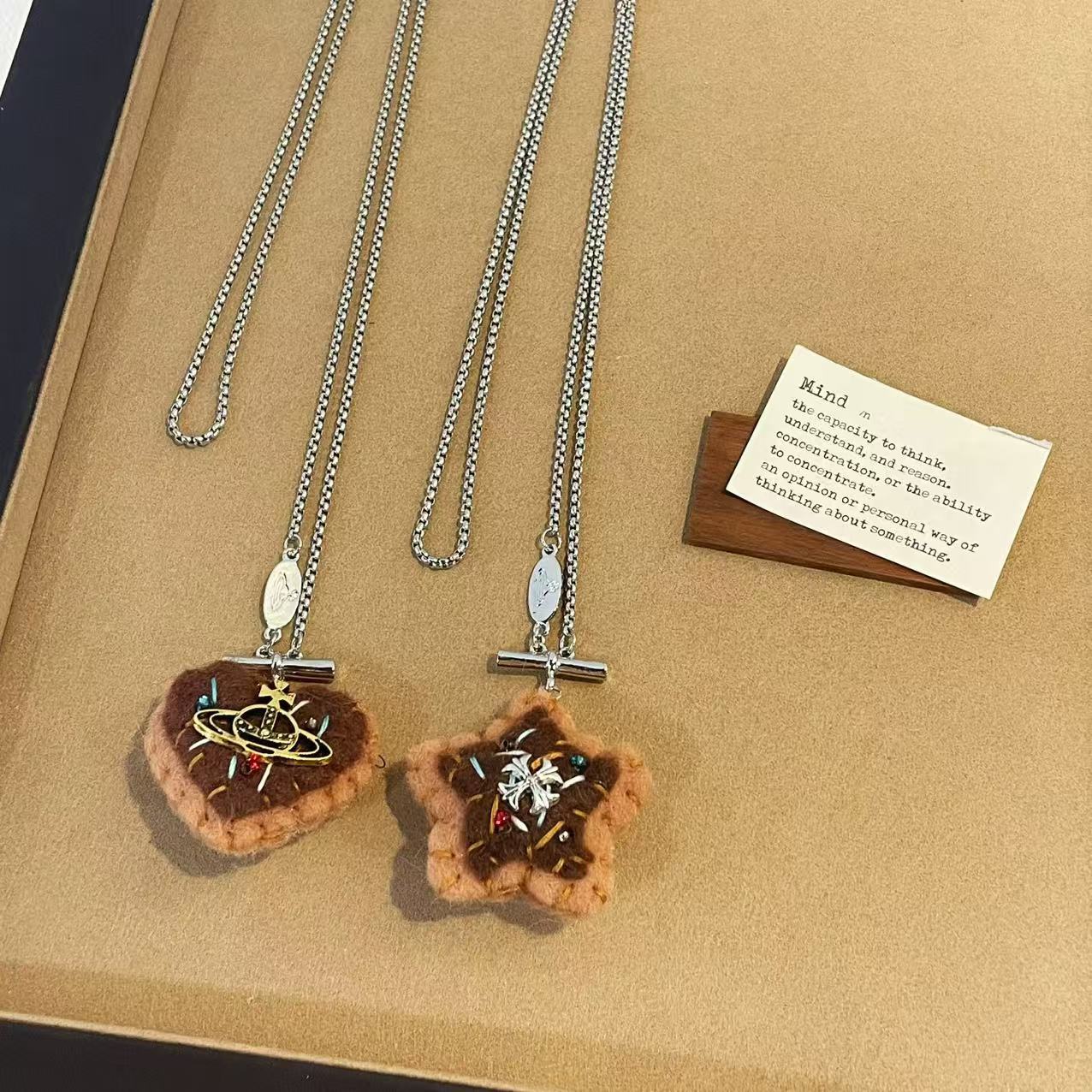 Retro Cute Wool Felt Planet Necklace Niche Design Exquisite Versatile Unique Star Sweater Chain Necklace
