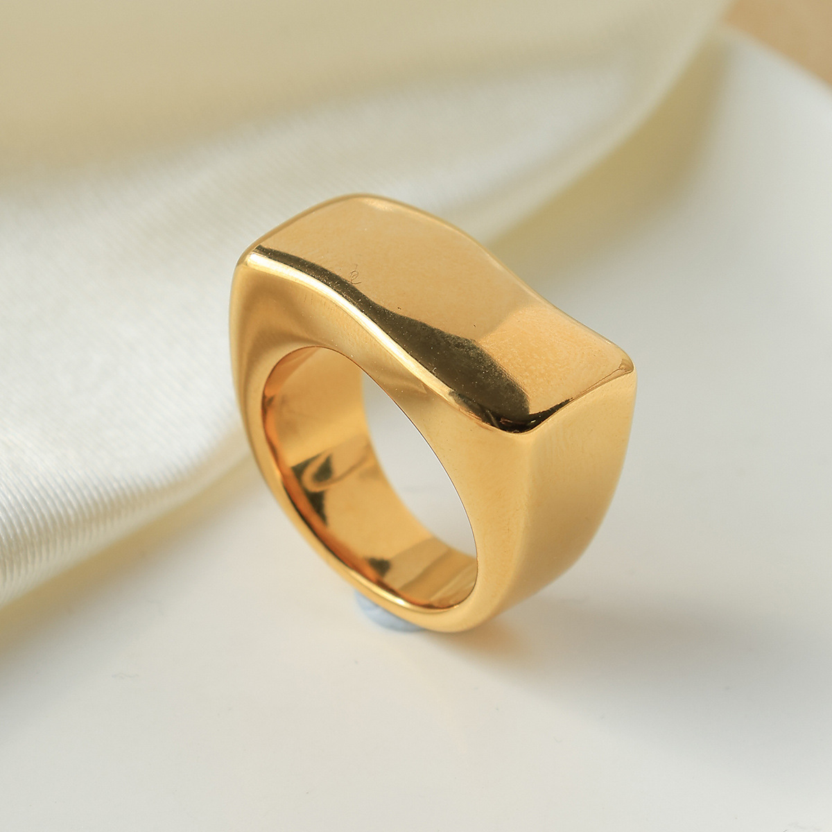 Fashionable Vintage Style Thick Stainless Steel Ring with Wavy Quadrilateral Geometric Design, Simple Gold-Plated Women's Jewelry Wholesale