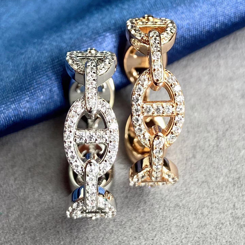 V gold material full diamond pig nose ring hollow hand inlaid thick version high quality fashion ring factory direct sales