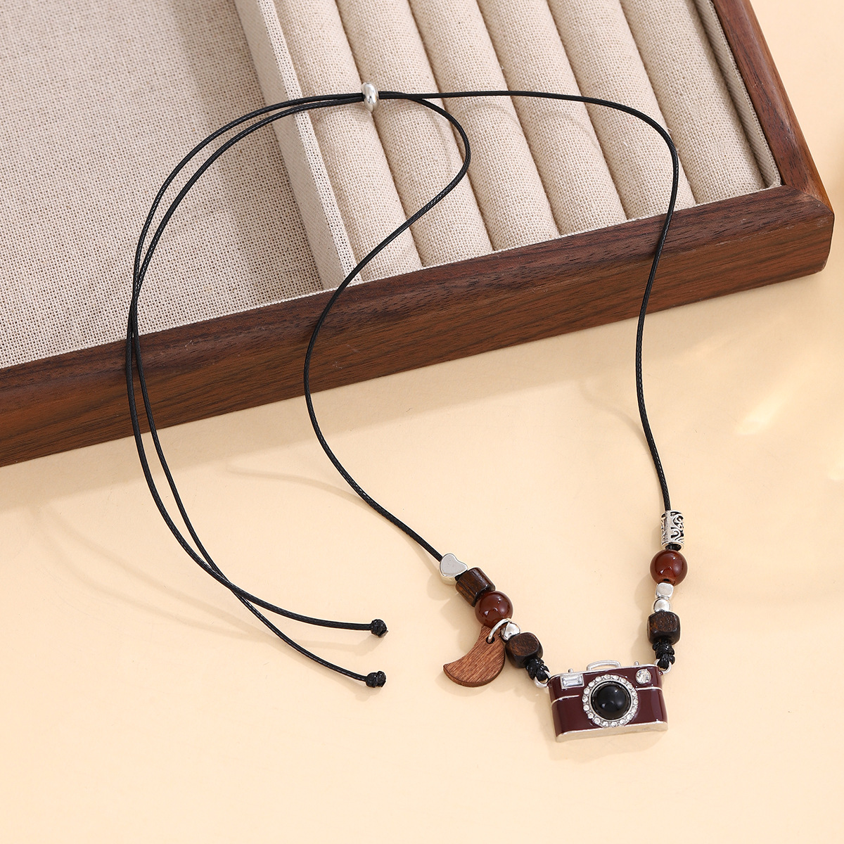 Retro Brown Camera Pearl Necklace Women's Light Luxury Niche Design Personalized Long Chain Sweater Chain Trendy Fashion Accessories