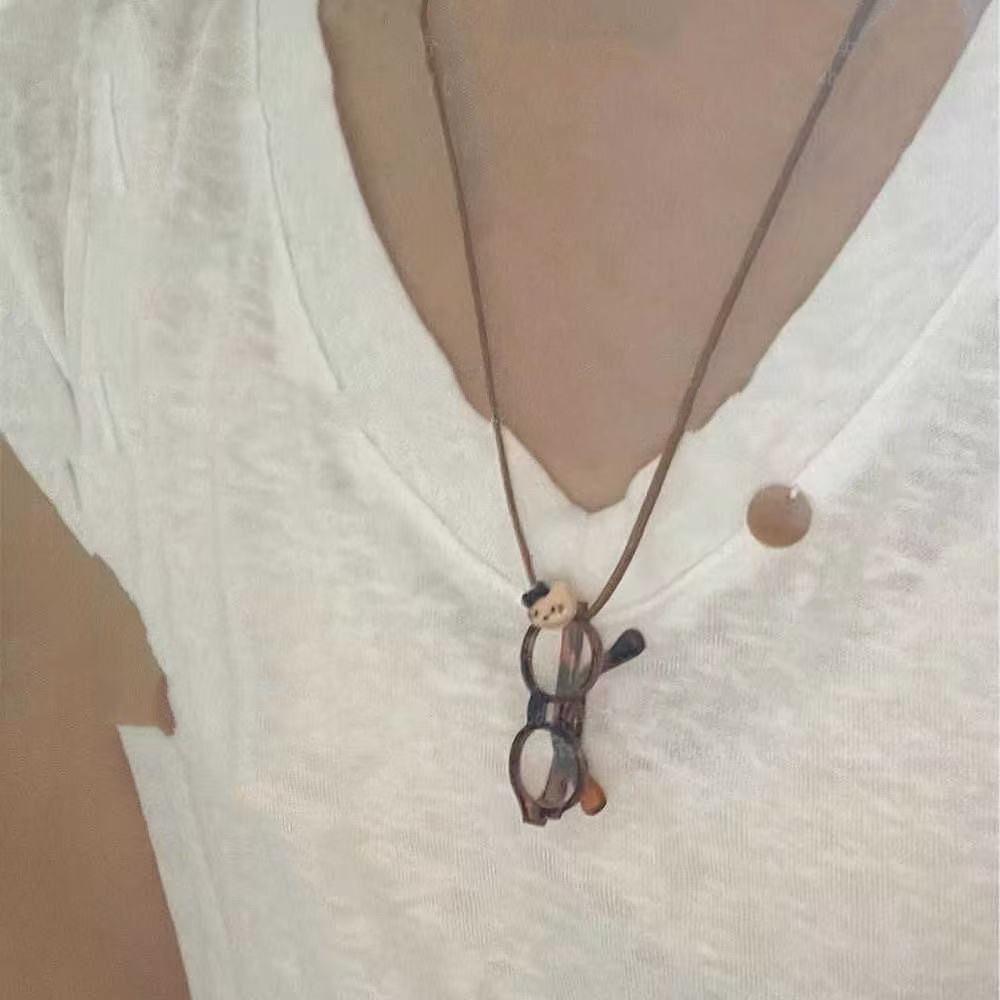 Creative Kt Cat Glasses Pendant Necklace Female Cute Niche Korean Sweater Sweater Chain Long Halter Accessories