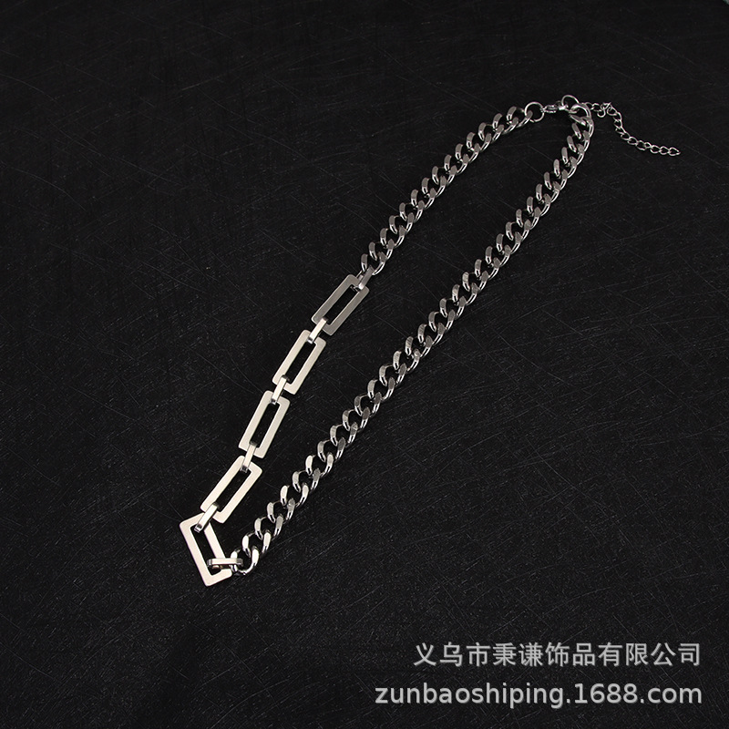 Hip-Hop Necklace Men and Women ins Style Square Stitching Clavicle Chain Sweatshirt Titanium Steel Color Retain Accessories Cuban Chain Trend
