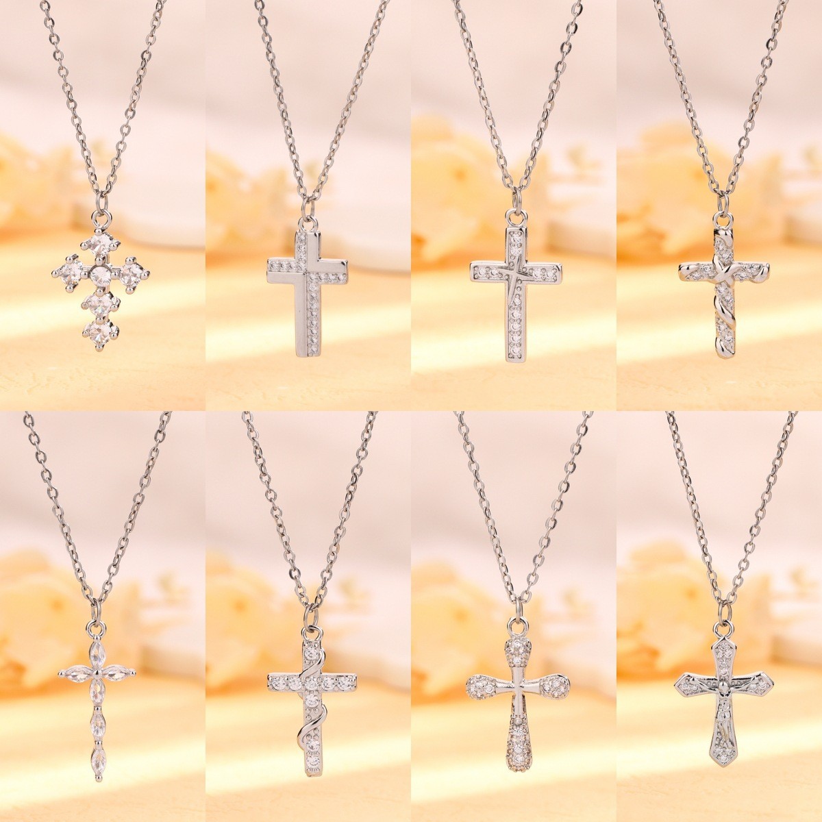Zircon Cross Necklace Trendy Japanese Women's Hip-Hop Cool Casual Sweater Chain Sweater Chain with Diamond Clavicle Chain