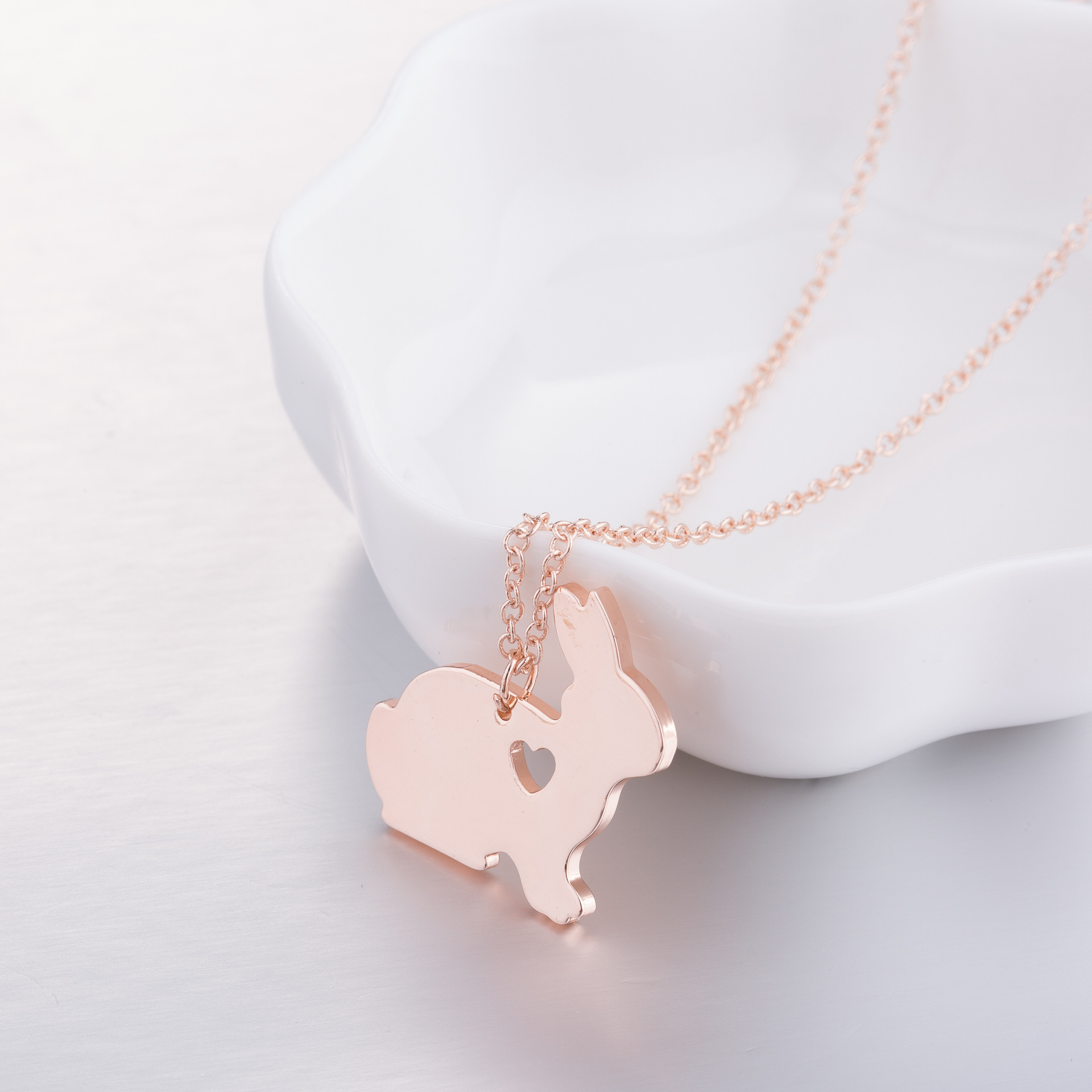Cute Rabbit Necklace Women's Fashion Personality Hollow Love Pendant Stainless Steel Jewelry Winter Sweater Clavicle Necklace