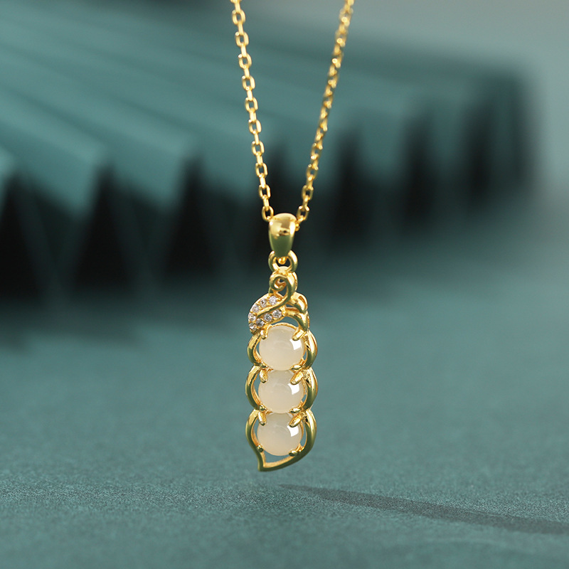 S925 Silver Doudou's All-match Sterling Silver 0 New Women's Woolen Chain Necklace Hetian Jade Autumn Age-reducing with Winter Coat