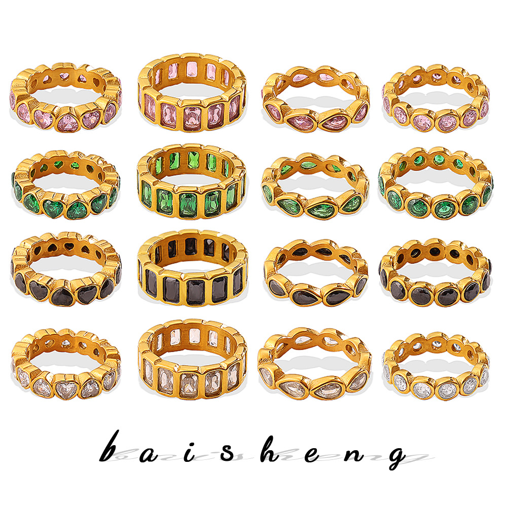 European and American Cross-Border Winter New Gold-Edged Ring Fashion Trendy Versatile Diamond-Encrusted Heart-Shaped Water Drop Ring