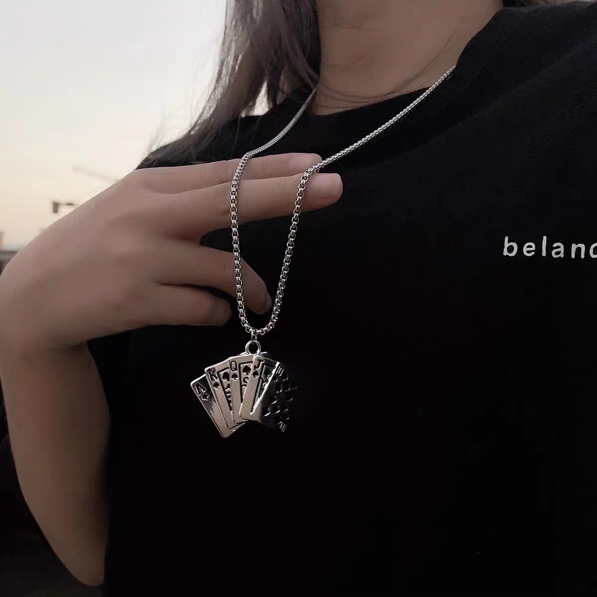 Personalized elegant trendy titanium steel sweater necklace hip hop poker fashion pendant men and women all-match sweater chain accessories