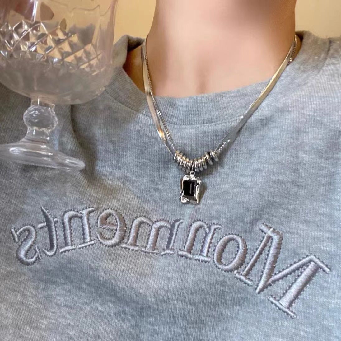 Trendy Zircon Double-Layer Necklace for Women and Men Hip-Hop Fashion Versatile Jewelry Sweater Sweatshirt Chain Accessory Geometric Collarbone Chain