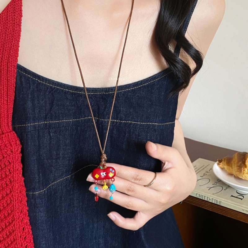 Autumn and Winter Ins Style Bright Red Mushroom Pearl Color Rope Necklace Design High-End Cute and Playful Sweater Sweatshirt Chain
