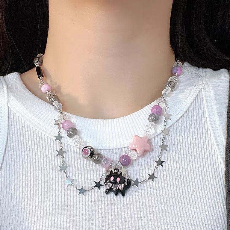 Funny little monster cat beaded star necklace female ins trendy niche design personality sweet cool y2g style sweater chain